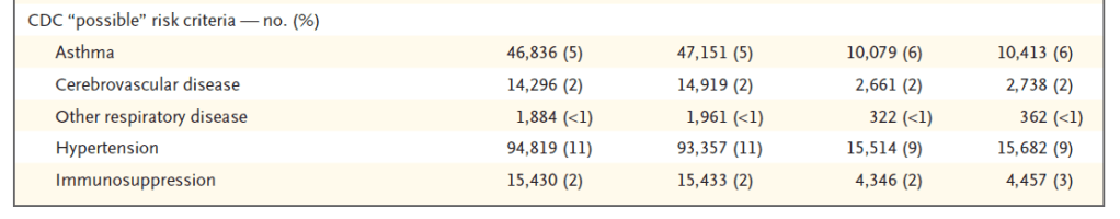 Bij met SARS-CoV-2 geïnfecteerde mensen kwamen bepaalde complicaties meer voor die minder of niet bij de gevaccineerde mensen gezien werden. Hartritmestoornissen werden bij 166 per 100.000 mensen gezien, nierschade (125 per 100.000 mensen), pericarditis (ontstoken hartzakje) (11 per 100.000 mensen), longembolie (62 per 100.000 mensen), diep veneuze trombose (43 per 100.000 mensen), hartinfarcten (25 per 100.000 mensen) en beroertes (14 per 100.00 mensen). In onderstaande tabel uit het artikel worden de 25 verschillende complicaties vergeleken. Dit zijn vooral risico’s bij oudere patiënten, deze kunnen dus een voordeel hebben bij de vaccinatie. Voor jonge mensen is dit persoonlijke voordeel veel minder, bij hen zouden de complicaties van het vaccin, hoewel zeldzaam zoals myocarditis, zwaarder moeten meewegen. Ik vraag mij wel af of zij die het zo vanzelfsprekend vinden dat jonge studenten gevaccineerd moeten zijn om deel te kunnen nemen aan colleges dit wel meewegen in hun standpunt.
